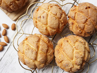 クッキー生地にアーモンドをたっぷりと混ぜ込み、カリッと香ばしいメロンパンです。
